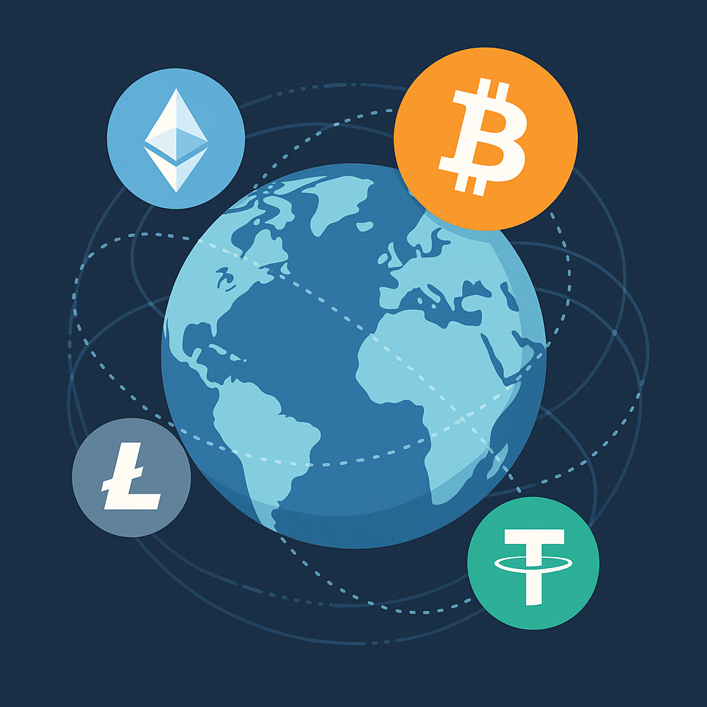 Kryptowährungen wie Bitcoin oder Litecoin sind digitale Währungen, die unabhängig von Banken oder Staaten funktionieren. Sie ermöglichen es, weltweit Geld zu versenden – schnell, sicher und ohne Mittelsmänner wie Zahlungsdienstleister.
